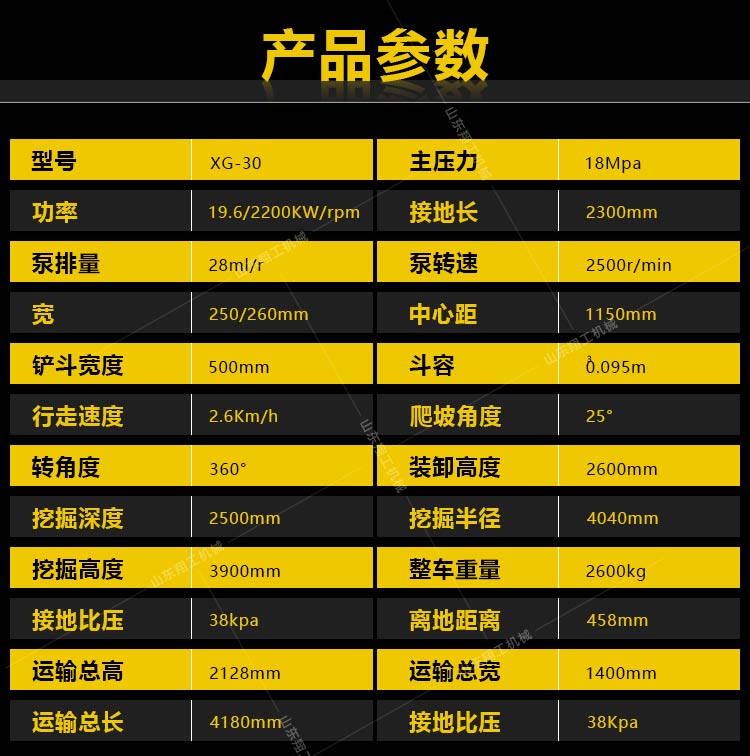小型挖掘機(jī)一般由動(dòng)力裝置、傳動(dòng)裝置、行走裝置和工作裝置等組成。XWJ-30履帶式小型挖掘機(jī)配置高,性能優(yōu)越,在市政工程以及農(nóng)業(yè)領(lǐng)域都有很好的使用效果。